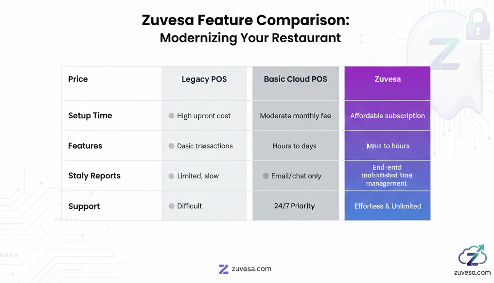 Ready to see the difference? Try Zuvesa's free tier or schedule a demo. No sales pressure, just see what modern restaurant tech can do.